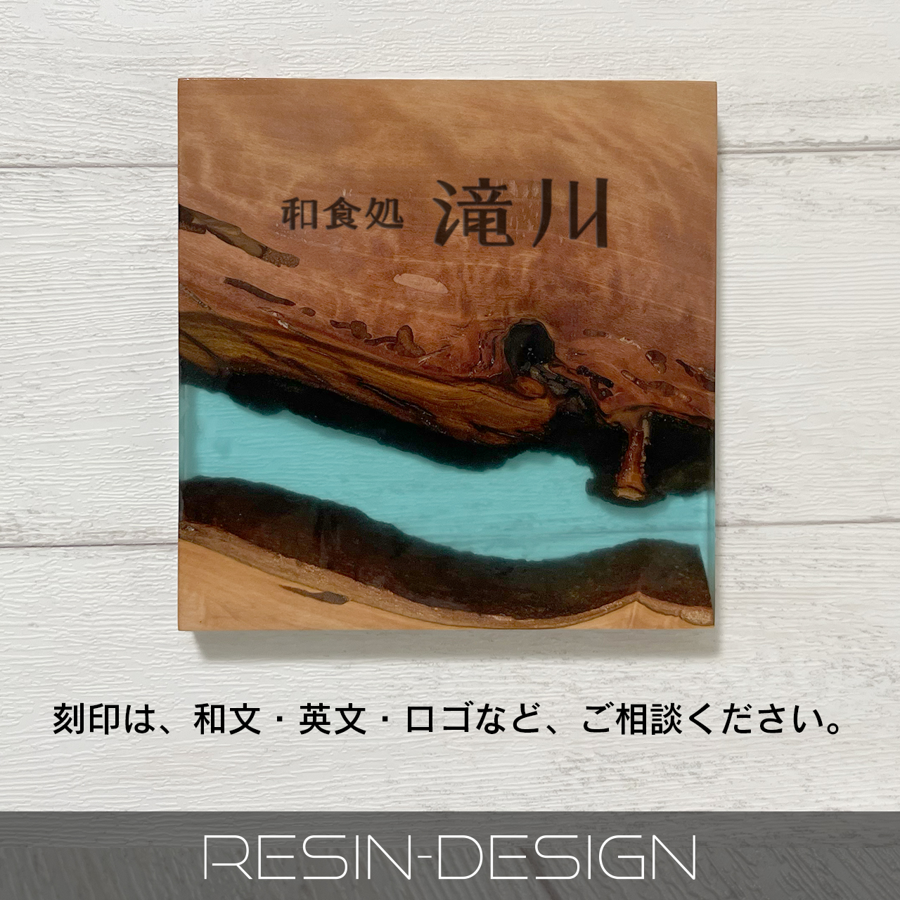【新商品】天然木とレジンの表札 151×144×15mm【木材:イスノキ】【レジン:クリアグリーン】
